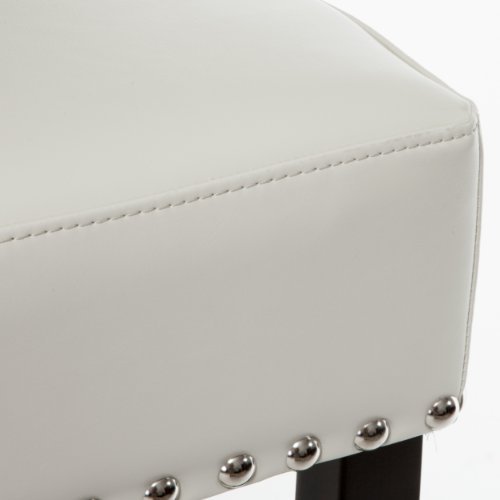 - Upholstered with fine bonded leather in ivory with chrome nailhead accents